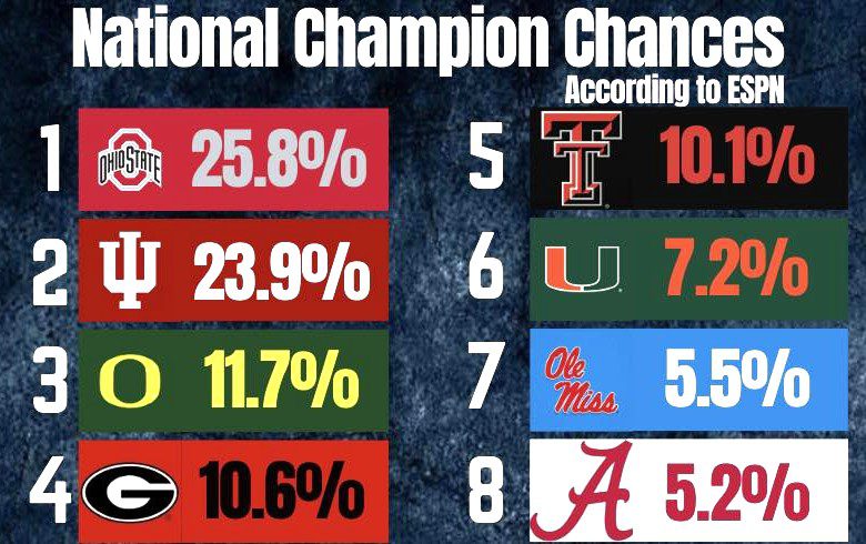 I have been saying for most of the year with conviction that this year’s national champion will be either Ohio State or Georgia. The more that things change, the more they stay the same! IU is a tempting pick, but experience matters in any playoff.